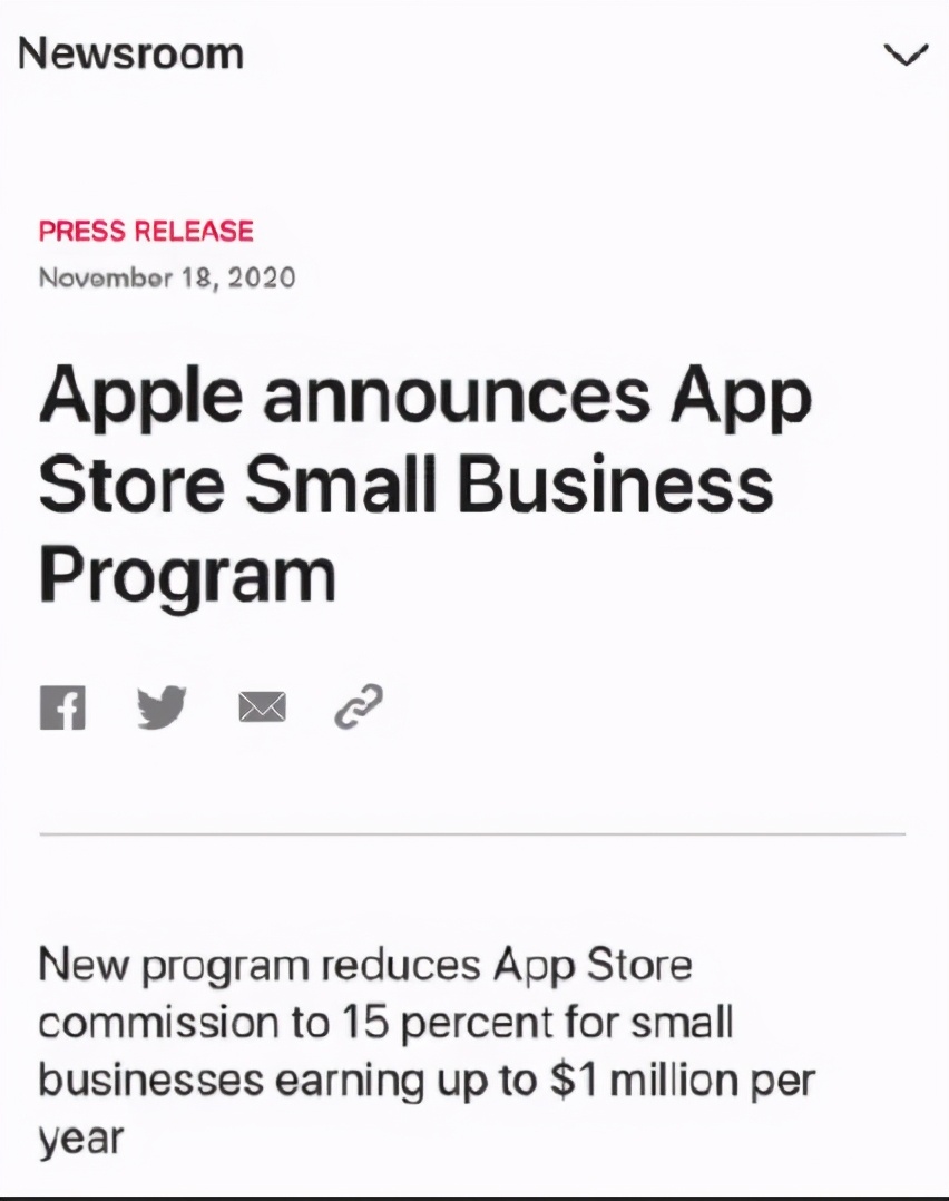 注意,要想享受这项政策,必须是年收入不足100万美元的小型企业或独立开发者。而且如果企业和开发者营收规模增长,明年达到了100万美元,则次年开始还是要按照标准的30%费率计费。